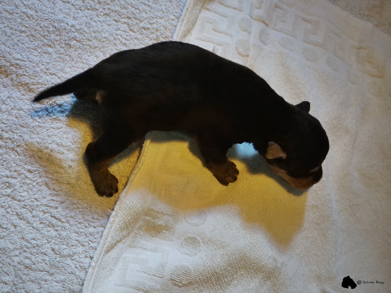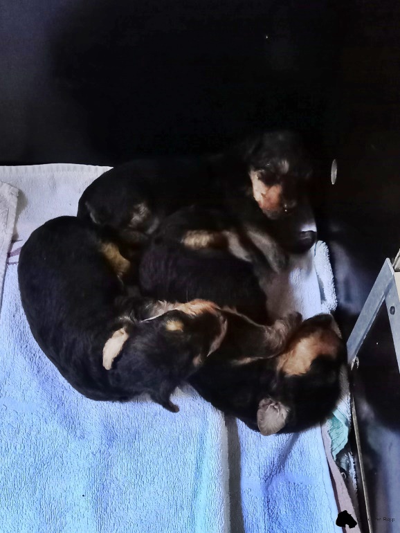 Seit drei Wochen versorgt Wiega in ihrem dritten Wurf drei entzückende Airedale-Mädchen. Der Vater der Kleinen ist “ Glenroses Rocket Man“ (VDH-Jugendsieger, Annual Trophy Junior Winner, Deutscher Jugend-Champion VDH, KfT Jugendchampion, VDH Frühjahrssieger).