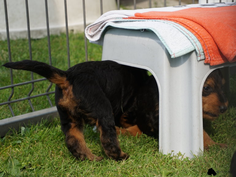 Ronja hat ihre Welpen am 04. November geworfen. 6 Rüden und 3 Hündinnen werden demnächst die Wurfkiste und alles drumherum erkunden.