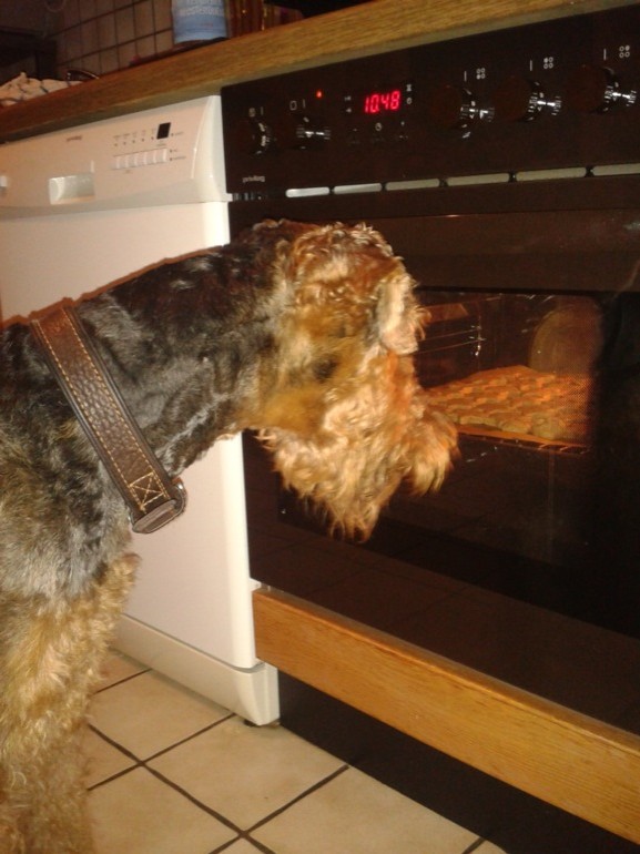Zwischenzeitlich war ich bei einem Hundefrisör, der mich ganz schick frisiert hat. Mit den Nachbarshunden Kira und Sam vertage ich mich ganz prima, wobei ich bei der Kira offensichtlich auch schon ganz andere Interessen im Kopf habe. In unserem Garten steht ein ganz großer Walnußbaum, der jedes Jahr sehr viele Früchte trägt. Die Nüsse kann ich mir ja auch allein knacken. Aber noch viel lieber nehme ich die von Frauchen oder Herrchen bereits Geknackten, dann habe ich keine Arbeit. Wenn es Nüsse gibt, bin ich auch der artigste Hund der Welt. Artig bin ich eigentlich immer, nur wenn andere Hunde mit im Spiel sind, dann fällt mir das Hören immer noch ein wenig schwer. Aber neulich ist mir ein Ding passiert. Das muß ich Ihnen mitteilen: Mein Frauchen brät drei Putenschnitzel. Weil meine beiden Partner keine Superfleischesser sind und die Schnitzel so groß waren, beschließen sie, sich zu Mittag eins zu teilen. Folglich waren noch zwei übrig. Das habe ich natürlich genau registriert. Als das Mittagessen beendet war, stand die Küchentür noch ein wenig auf , so dass ich ohne Mühen in die Küche zurückgehen konnte, um den Sachverhalt zu prüfen : Und da lagen die zwei Schnitzel in für mich erreichbarer Nähe auf dem Küchentisch und dufteten so herrlich vor sich hin. Da habe ich schnell beschlossen, eines von den beiden könntest du dir ja mal genehmigen. Aber wie das nun einmal im Leben so ist, auf einem Mal waren alle beiden verschwunden. Mein Frauchen brauchte aber nicht lange zu suchen, denn sie hat mich gleich in Verdacht gehabt und mich anhand von eindeutigen Indizien überführt. Da aber schon eine geraume Zeit vergangen war , habe ich auch keine Schimpfe mehr bekommen. Diese Aufteilung entspricht zwar nicht einer mathematischen Normalverteilung, aber ich fand sie ganz in Ordnung.