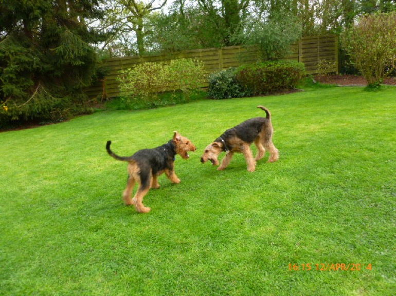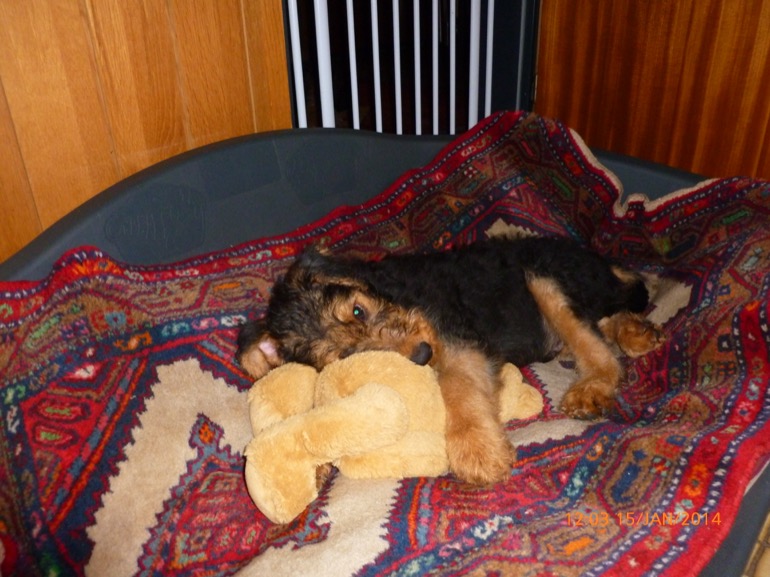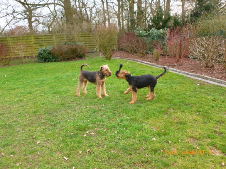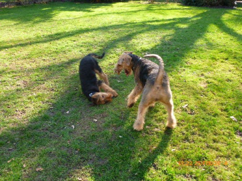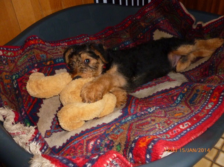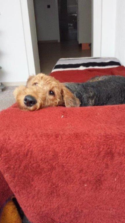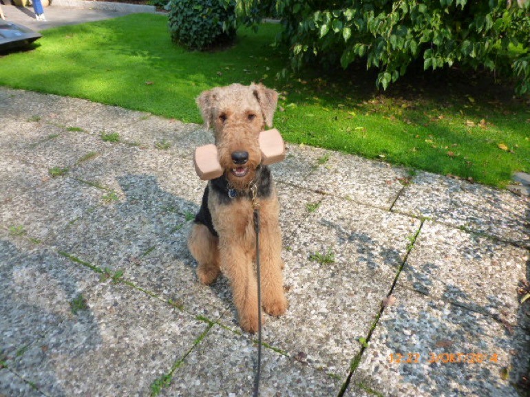 wir haben übrigens noch eine Coco-Lino in unserer Familie. Ein Stoffairedale für Niki, der schon gehorcht!