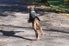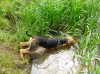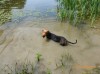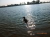 Endlich kommen die Bilder von mir, entschuldige, dass es gedauert hat, aber Saskia hat sich den Arm gebrochen am Montag im Schulsport und da ging die Sache kurz vergessen. Hier jage ich einem Hundefrisbee nach, an der Aare, erinnerst du dich, dort wo die Enten wohnen. Coole Beine habe ich, gell?
