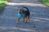 Am liebsten geh ich mit Saskia und ihrer Freundin spazieren, das ist spassig. Mit denen kann ich toben, springen, Kong spielen und vieles mehr. Mit Herrchen und Frauchen ist viel Üben angesagt…. hmmmm! So Sitzen am Fuss wenn Radfahrer kommen und nicht hinterher jagen, voran gehen und nicht hinter Frauchen, sie sagt immer, Hunde und Kinder gehören nach vorne, dabei wär hinter spannend, da könnt ich zu den Enten oder so. Fussgehen klappt schon ordentlich, wenn ich denn will.