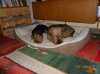Ich war von der langen Reise noch so geschafft, ich habe kaum gefressen und praktisch den ganzen Tag geschlafen. Mit Saskia ging ich immerhin 4 mal raus – auf die kleine Wiese, die ich sofort als meine Toilette für okay befunden habe…. Aber spielen und rumspringen war viel lustiger als Bächlein-Häufchen-dinge zu denken, aber ins Haus habe ich nicht mehr gemacht, im Garten fand ich dann eine Ecke für Bächlein, Mama Umbricht sagt, dass sei ganz ok.