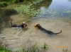 Schau mal, ich habe Dir auch davon ein paar Bilder mitgeschickt. Henry und ich im Garten bei Gabi ( Gabi ist das Frauchen von Henry ), wir haben uns ganz prima verstanden. Hinterher waren wir beide richtig platt, so haben wir getobt.