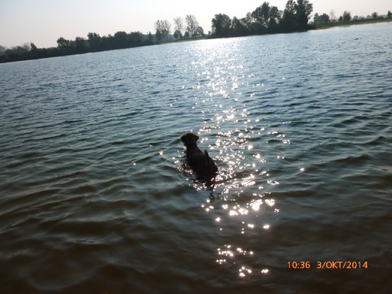 Beim Spazieren jage ich nun einem Wurfding hinterher. Das ist soooo cool, da vergess ich sogar Radfahrer und Jogger (ausser dem Einen, den mag ich einfach nicht… hmmmmm) Und an der Aare hat es ENTEN, so Federvieh, die watscheln so komisch. Denen wollte ich auch schon Hallo sagen, aber die flogen dann weg – ich musste vor lauter Staunen springen, huiiiii flogen meine Ohren in die Höhe.