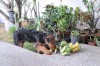 Quincy untersucht alles und jedes. Hat sich den Teddy meiner Tochter Aom geschnappt, den er dann aber auch behalten durfte und mit dem er gerne auf ruppige Art und Weise spielt. Auch Bananen müssen mal inspiziert und probiert werden. Als ein Handwerker bei uns war, der draußen am Haus etwas reparierte, steckte Quincy seine Nase am liebsten dahin, wo der Mann schrauben oder sägen wollte. Der hat für Quincy auch in Windeseile zwei Rampen gebaut, damit er nicht so viel Stufen hoch und runter läuft, weil er ja sehr viel zwischen drinnen und draußen hin und her pendelt. Die Rampe für drei Stufen akzeptiert er und nutzt sie gerne hoch und runter. Die Rampe für zwei Stufen nutzt er nur beim Runtergehen.