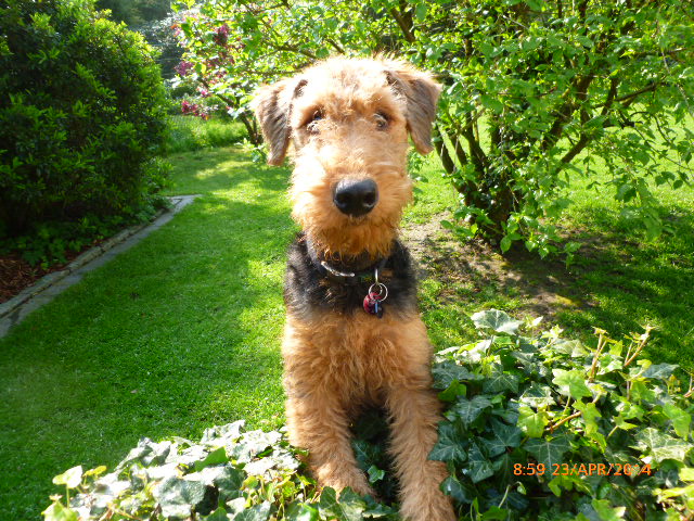 Heute schicken wir Ihnen noch ein Bild von unserer Lakritzschnute und grüßen damit alle Airedales und ihre Besitzer.