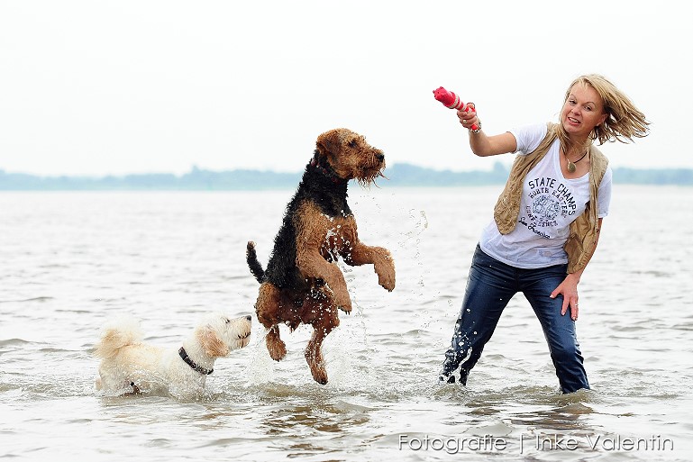 am Samstag hat Lea die Begleithundeprüfung, mit zweitbester Bewertung, bestanden. Der Richter, Herr Helmut Danzer aus Bayern, war ganz verliebt in Lea – er hat selbst 25 Jahre Airedale gehabt und geführt. Also ein guter Tag für uns, aber sie hat keinen Airedalebonus bekommen, sie hat alles sehr schön gemacht. Der Prüfungsleiter kam anschließend zu mir, und sagte:“Du hast einen ganz tollen Hund, du solltest weitermachen.“