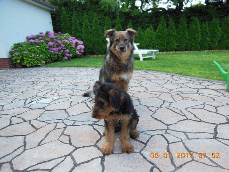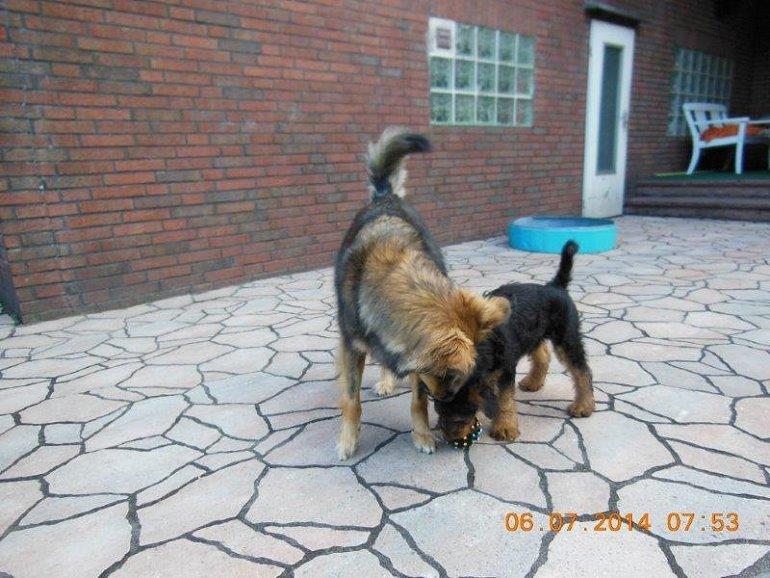 unser Henry war ganz verliebt in seine Schwester Coco. Bei herrlichem Sommerwetter hat Frau Wagner uns besucht. Die beiden Hundekinder haben so lieb zusammen gespielt und auch gleich eine tote Maus angebracht. Henry ist inzwischen ein großer Junge geworden, der mit Coco gut mithielt. Wir finden unseren Rüden klasse. Er ist immer mit Menschen zusammen, er gehorcht super und ist seinem Laufheck für die Nacht entwachsen. Er liebt sich frei im Erdgeschoss zu bewegen, Frau Wagner war erstaunt, dass er nirgends ran geht!!!! Also ein ganz lieber Hund.