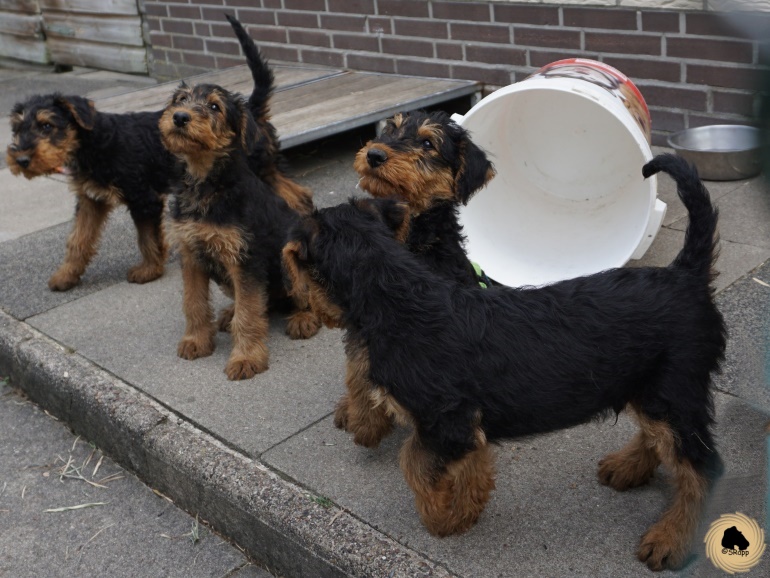Lotta und Linus würden sich auch sehr freuen, wenn sie bald Menschen fänden, die ihnen ganz alleine gehören. Geboren sind sie am 29. April 2022, die Mutter ist Elegance, der Vater Glen Roses Ice Cold Ice T. Der Frisörtermin für die beiden steht jetzt an. Aber wir garantieren euch, dass unter dem Gewuschel auch richtige kleine Airedales stecken. Bei Interesse meldet euch gerne!