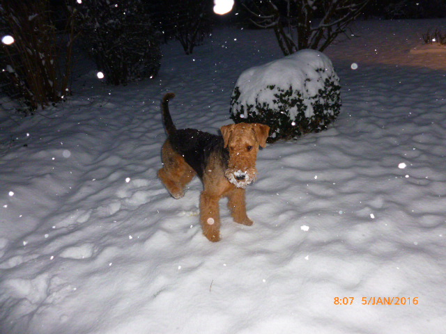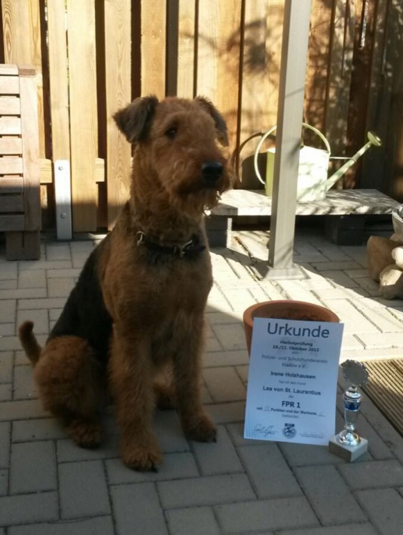 Übrigens Ende August bis Mitte September 2016 fahren wir nach Celle in Urlaub in ein sehr schönes Ferienhaus und Mami hat mir versprochen dass wir dich dann mal besuchen kommen. Ich bin gespannt ob du mich gleich wiedererkennst und freue mich schon darauf. Wir werden dann auch in Wedemark am Airedale Treffen teilnehmen. Ich hoffe sehr dass ich dort viele Freunde kennenlernen und mit ihnen spielen kann. Ach ja, alle sagen dass ich ein wunderschöner Hund sei, aber das weiss ich ja auch so, denn Mami sagt immer dass sie ganz stolz ist auf mich, weil ich soooooo lieb und klug bin. Nur in der Nacht wenn es dunkel ist bin ein ziemlicher „Angsthase“.